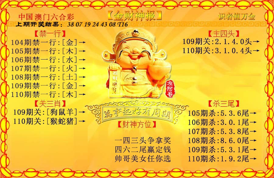 110期: 澳门六合彩红姐彩圖信封【黄财神报】每期自动更新