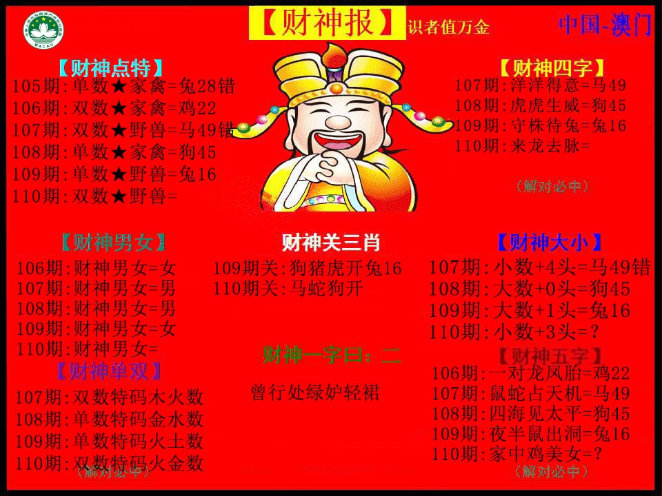 110期: 澳门六合彩红姐彩圖信封【黄财神报】每期自动更新