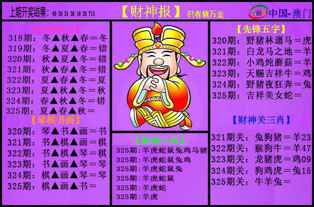325期: 澳门六合彩红姐彩圖信封【紫财神报】每期自动更新